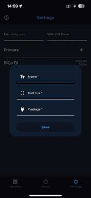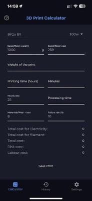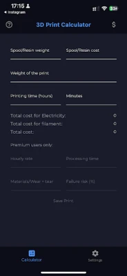 Premium Features: * Printer Management: Store details of multiple printers, allowing you to switch between them effortlessly when calculating print costs. * Unlock advanced fields for more detailed calculations, save prints, and track your costs with a history screen.