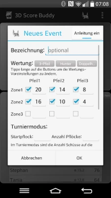 With 3DScoreBuddy the individual shot results of one or more archers can be recorded comfortably.