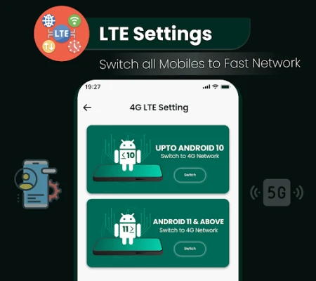 Your ultimate 4G LTE, 3G, and 5G network management app for seamless connectivity and speed testing. Switch between force 5G, 4G LTE, 3G, and 2G modes for optimal 4G internet and WiFi speed. Monitor 4G data network usage, check 4G sim signal strength, and perform 4G LTE speed tests to ensure the best 4G network performance.