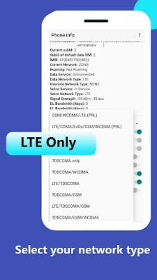 Ltd network mode switcher also test & show your internet speed of 5G,4G/LTE,3G depending on your network service provider (Approximately) Check your SIM card information of your device with 4G LTE only mode app. 4G/5G LTE Network switch