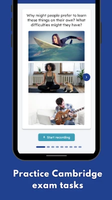 Tailored content for Cambridge English exams and IELTS, pass your speaking exam with ease!