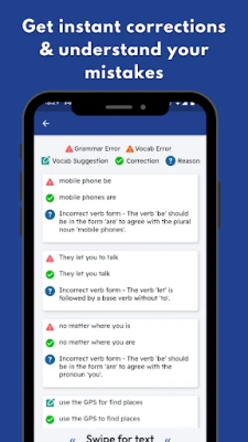 Get real-time A.I-powered corrections, it's like having an English teacher in your pocket whenever you want to practice speaking.