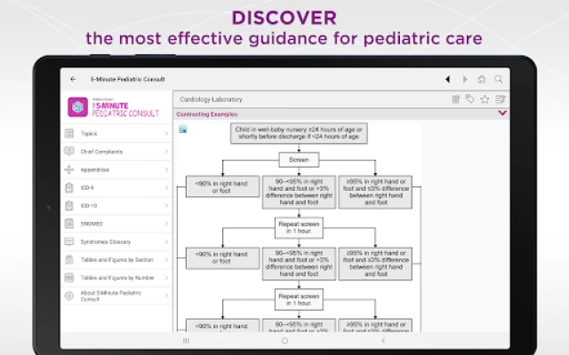 FREE PREVIEW – View select topics to explore pediatric conditions organized in the famous 5-Minute style. Quickly navigate the detailed entries and see how this app will help you find answers fast and improve pediatric patient care.