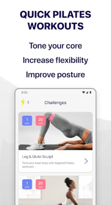Regular pilates practice improves flexibility, increases core strength and tones muscles. Be amazed at what you can achieve in 5 minutes a day.