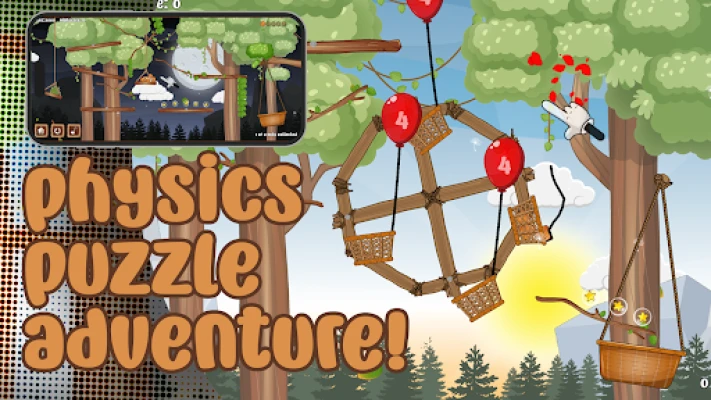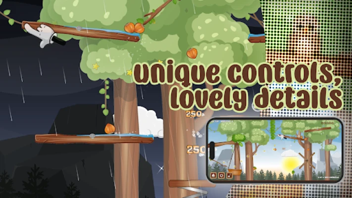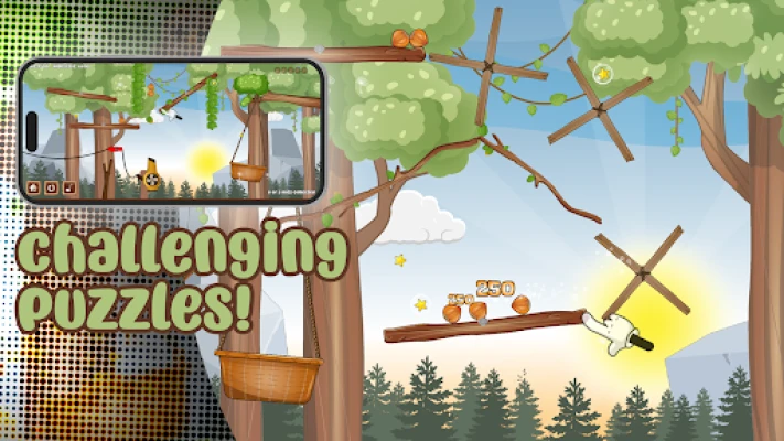 Experience a whole new way to control and move nuts! Use touch to move five nuts across adjustable branch platforms. Your goal? Guide them home to the fruit basket by creatively using the surrounding objects and creatures.