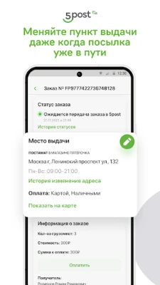 Удобное и понятное мобильное приложение службы доставки 5Post. Приложение позволяет отслеживать статус доставки заказов из интернет-магазинов в пункты выдачи 5Post.