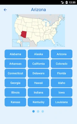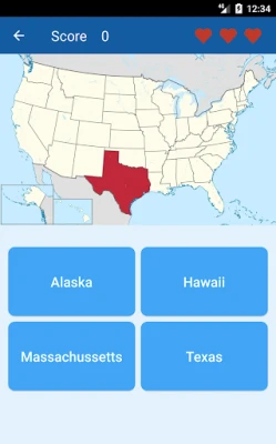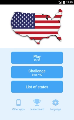 Discover several exciting game modes: - Quiz mode: answer as many questions as possible with only 3 mistakes allowed. - Challenge mode: you have 2 minutes to guess all 50 USA states. - Learning mode: review and memorize the 50 states of the USA at your own pace.