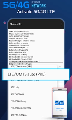 This app help you to switch into 5G/4G network (LET network), WCDMA network, GSM network, CDMA network just in one click.