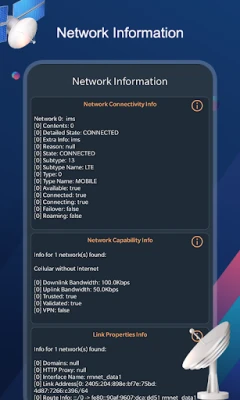 - Advanced network information like Network Connectivity info, Network Capability info & Link Properties info.