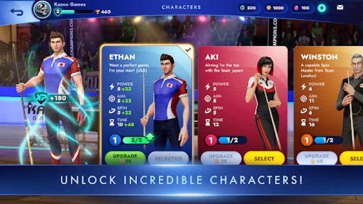 Collect and upgrade rare and legendary cues, gloves, and chalks to boost your performance. Choose from unique characters, each with different playstyles, to personalize your multiplayer pool experience.