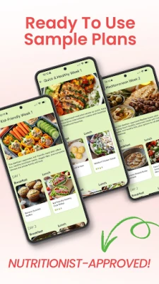 - Access 4 sample meal plans (like Quick & Healthy or Vegetarian)