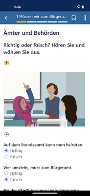 Features - 12 lessons - A range of exercises - Practise reading, writing, listening and speaking - Menu navigation and usage instructions available in 20 languages - Free - Use it offline - Recognised by the BAMF as a teaching aid for courses