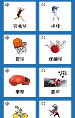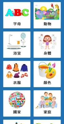 It includes many categories: numbers, animals, colors, clothing, countries, food and many more.
