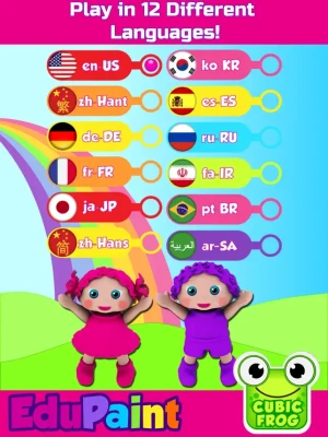 (Cubic Frog®) is proud to be a global and multilingual kids' educational company with apps offering 12 different language options: English, Spanish, Arabic, Russian, Persian, French, German, Chinese, Korean, Japanese, and Portuguese. Learn a new language or improve on another!