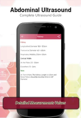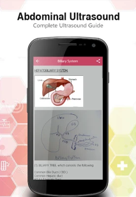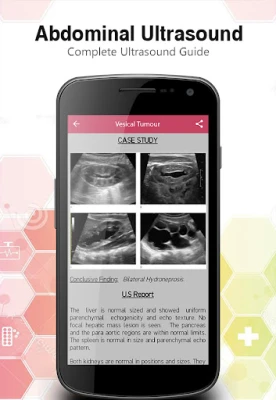 Abdominal Ultrasound Guide app contains ultrasound scan of all the abdominal organ and pelvic with clear description of the ultrasound pathological with images.