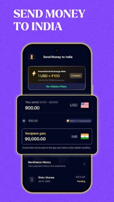 - Zero hidden fees on sending money to India