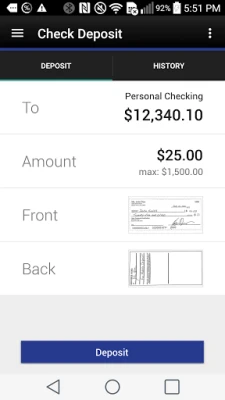 Deposits -Deposit checks right from your Android phone.
