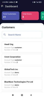 Features include: Viewing lists of customers and sites Adding / Deleting doors Enrolling / Unenrolling access cards