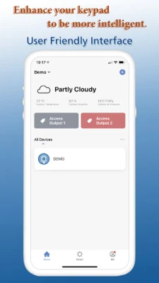 Voice control is available as well. Siri for controlling the door outputs and get notifications if the keypad is offline.
