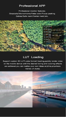 With the CineEye Wireless Video Transmitter, the App can turn phones and tablets into professional monitor. The functions of the App are: