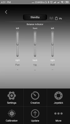 With the gimbal, the App can be used to tuning the settings of the gimbal, camera control, gimbal remote control, gimbal calibrating and firmware upgrade.