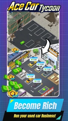 In Ace Car Tycoon, you can run your own car dealership, buy and repair cars, hire employees, unlock facilities, and expand your marketing to attract more customers and increase profits. Start by collecting your first car and gradually become a Ace car tycoon!