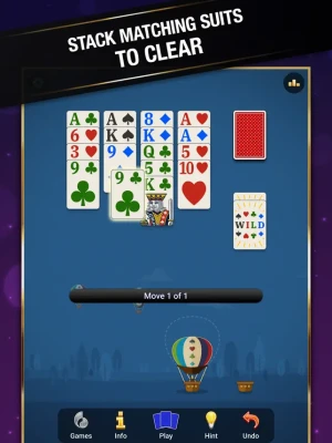 Earn wild cards by clearing the cards from the game board. The wild card allows you to discard any card from the game. Each game, players can earn up to 3 cards. Wild cards help avoid situations where you get stuck and have no moves to make! No one wants to be dealt a hand they can’t win. Each wild card you save grants additional bonus points for that game.