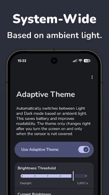 🌤️ Smart Ambient Detection: Uses your device's physical light sensor to toggle the system theme.