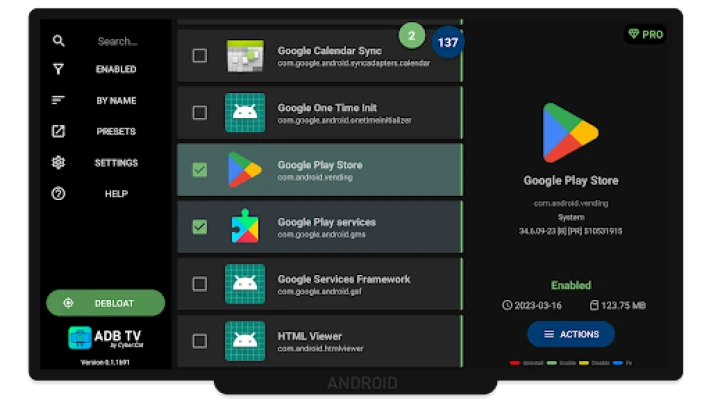 ADB TV: App Manager lets you easily manage your apps on Android TV using ADB (Android Debug Bridge) feature. After setting up the ADB connection, you will be able to disable (freeze) and uninstall* apps. Try it once and ADB TV will live permanently on your TV!