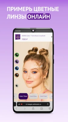 Отличная новость: купить контактные линзы и начать менять цвет глаз хоть каждый день теперь можно вместе с оптикой ADRIA! Наше приложение поможет выбрать линзы для тебя и твоей лучшей подружки: визаж, косметика, цветные линзы на глаза — и вы, как магнит, притягиваете всеобщее внимание!