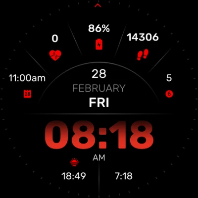 Features dynamic seconds movement and four customizable widgets. Whether you need world time, sunrise data, or event reminders, everything is available at a glance.