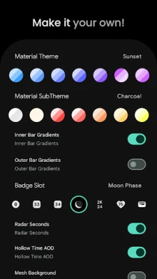 • badge slot (Unread Notification Count, Seconds, Week of Year, Moon Phase, Year, Heart Rate, Google Pay)