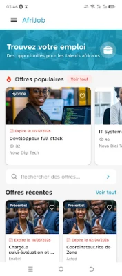 AFRIJOB est l’application mobile pensée pour les chercheurs d’emploi en Afrique francophone. Créez un CV professionnel en quelques minutes, adaptez-le aux offres qui vous intéressent et postulez facilement depuis votre téléphone.