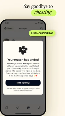 No more getting left on read. After’s anti-ghosting feature ensures you’re never left wondering. If a match isn’t working out or messages aren’t being exchanged, you are guided through an intentional process to end that match with respect and kindness. Goodbye Ghosting takes care of sending that final message so you can do the right thing without the awkwardness.
