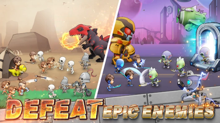 Evolve Your Army Through the Ages: Command warriors from cavemen to modern soldiers, each with unique abilities, as you progress through different eras of history.