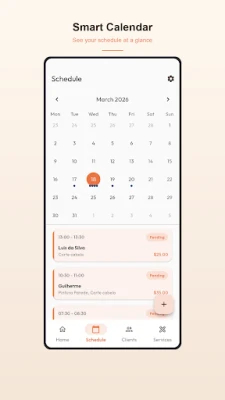Barbers, electricians, painters, consultants, personal trainers, nail technicians, photographers, and any professional who works independently and needs to manage their schedule.