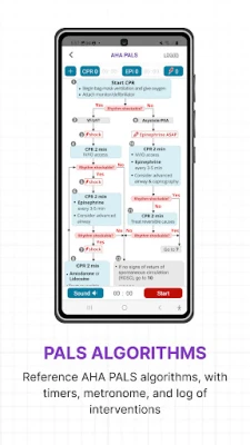 - Easy-to-read timers and ability to log rounds of CPR, epinephrine, and defibrillations. There are additional functionalities to log PALS Cardiac Arrest interventions beyond EPI, CPR , and shocks such as lidocaine and more. We also added a new metronome feature to improve compression accuracy as well as a ROSC button.