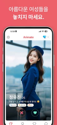 아리메이트와 함께 원하는 상대를 선택하고, 하트 표시로 나만의 가상의 여자친구를 만나보세요.