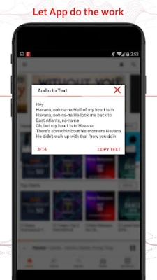How to use : First of all download this Audio To Textapp. Install it. Now for e.g:-If u get any audio clip in Whats app or hike etc..app share that clip with "Audio To Text" application, that will give you text formate on "Dialogue box" of this application. Now You can have quotes or dialogue in text from audio clip,with Audio To Textapp. Enjoy it by sharing your text via these app.