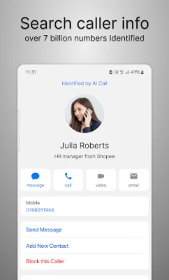 ● Smart Caller ID: Identify unknown callers with detailed information, including names, locations, and potential spam risk assessments powered by AI.