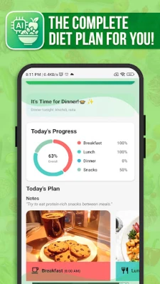 AI Diet Planner makes healthy eating simple and practical. It uses intelligent recommendations to build meal plans that match your body, habits, and lifestyle. As you progress, the app updates your plan automatically so you can keep improving at your own pace.