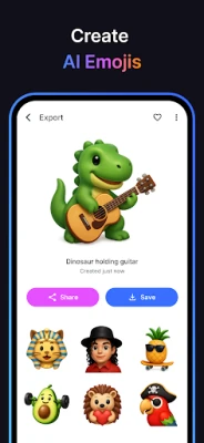 Turn text or images into unique AI emojis instantly. This app is your all-in-one solution to create your own emoji, make stickers, and share them in WhatsApp, chats, or social media.