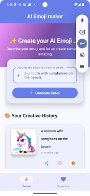 • Text-to-Emoji Generator: Enter a phrase and get multiple instant designs.