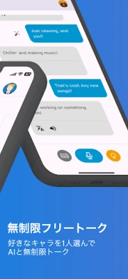 5人の特徴のあるキャラクターから1人選んで、AIと無制限に自由な会話を楽しむことができます。