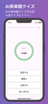 毎日更新される「英語ニュース」と「テーマ別英会話」にて4択英単語クイズを学習することができます。その日のテーマに関連する重要英単語・キーフレーズをピックアップしてAIが自動で英単語クイズを生成してくれます。