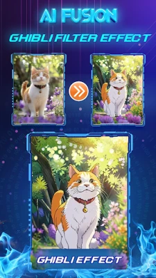 You can create unlimited images from the AI image Generator, in this AI Fusion Mix Animal Character. You can also transform images into enchanting scenes with the AI Ghibli Filter effect. Upload an image from the gallery, apply the Ghibli filter effect, and see the magic. A huge selection of animals and birds in AI Fusion Mix Animal Character is here to test your skills! This animal fusion app is perfect for all those who love to merge and create hybrid animals. This AI Fusion app is easy to use with smooth controls.