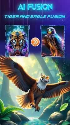Create your favorite characters with AI Fusion Mix Animal Character in a fun and creative way. You can merge two characters to create a hybrid one! In this AI Fusion app, the results are always surprising and exciting when you merge animals. Whenever you merge animals, you create a unique fusion that looks distinct from the merged characters. AI Fusion Mix Animal Character is an amazing app that will surprise you with a hybrid creation of characters. Save and share your favorite creations with friends.