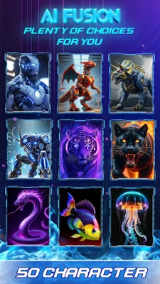 In AI Fusion Mix Animal Character, merge any characters to create stunning hybrids with your master skills. Merge animal characters and generate AI hybrid monsters. Transform these characters using AI technology into mixed and hybrid monsters in the AI Fusion Mix Animal Character app. Download the AI Fusion Mix Animal Character app now and show your incredible creations to friends.