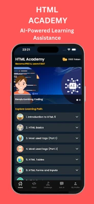 HTML Academy: Learn with AI is the ultimate app for learning and mastering HTML, whether you're starting from scratch or looking to refine your skills. Powered by cutting-edge AI, this app adapts to your learning style and pace, providing a personalized experience for beginners and advanced users alike.