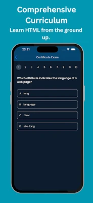 Comprehensive HTML Curriculum: The app covers everything from the basics to advanced HTML concepts. Start with tags, attributes, and elements, and progress to creating dynamic web pages with HTML5 and CSS.